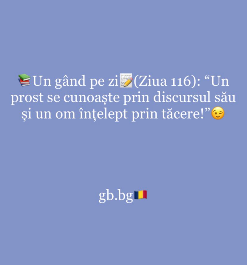 Ziua 116ianuarie 16, 2025 1 min read „Un prost se cunoaște prin discursul său și un om înțelept prin tăcere!”