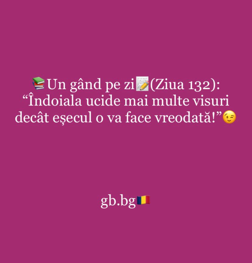 Ziua 132ianuarie 20, 2025 1 min read „Îndoiala ucide mai multe visuri decât eșecul o va face vreodată!”