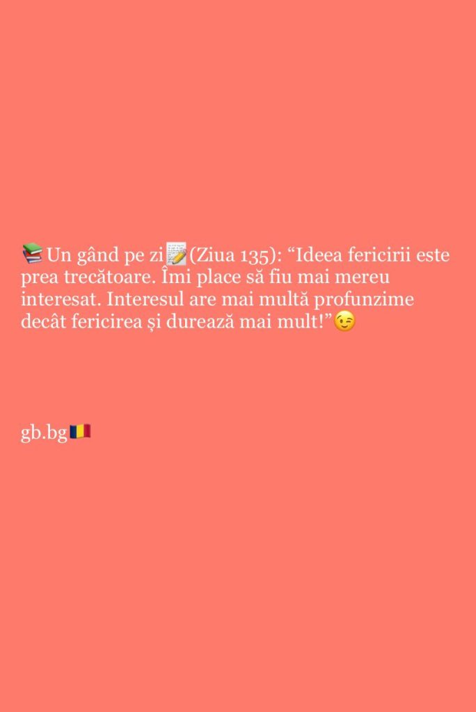 „Ideea fericirii este prea trecătoare. Îmi place să fiu mai mereu interesat. Interesul are mai multă profunzime decât fericirea și durează mai mult!”