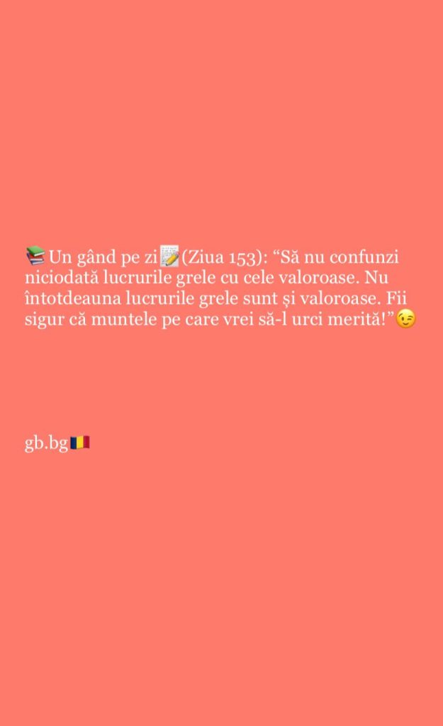 „Să nu confunzi niciodată lucrurile grele cu cele valoroase. Nu întotdeauna lucrurile grele sunt și valoroase. Fii sigur că muntele pe care vrei să-l urci merită!”