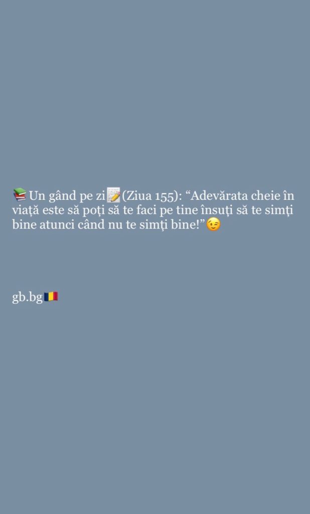 Ziua 155februarie 3, 2025 1 min read „Adevărata cheie în viață este să poți să te faci pe tine însuți să te simți bine atunci când nu te simți bine!”