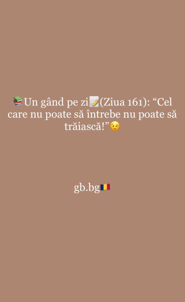 Ziua 160 „În orice clipă, întrebările pe care ni le punem nouă înșine pot să influențeze percepția a cine suntem noi, ce putem să […]