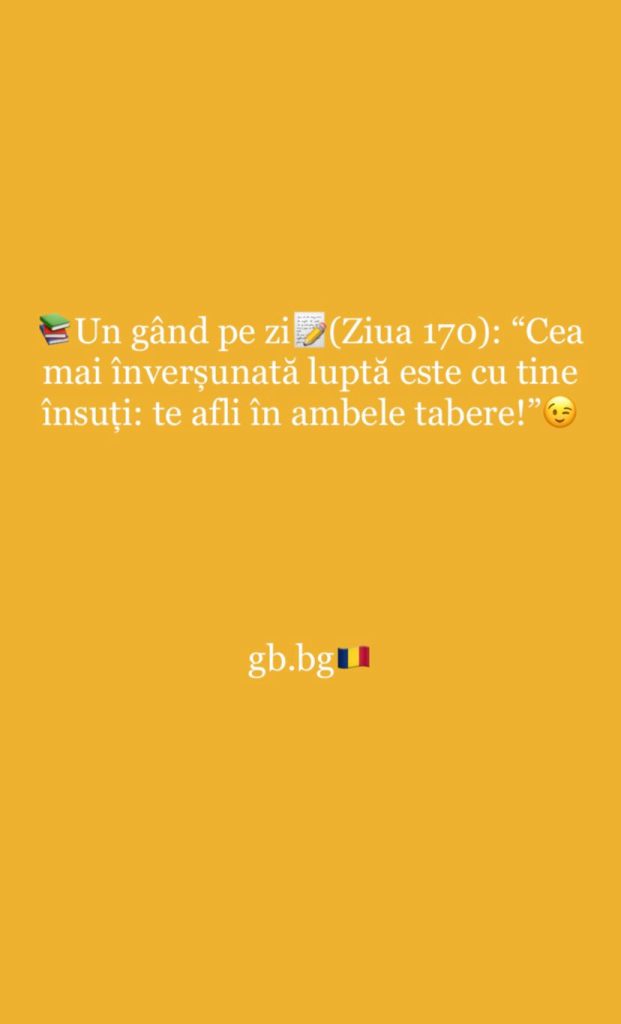 Ziua 170februarie 21, 2025 1 min read „Cea mai înverșunată luptă este cu tine însuți: te afli în ambele tabere!”