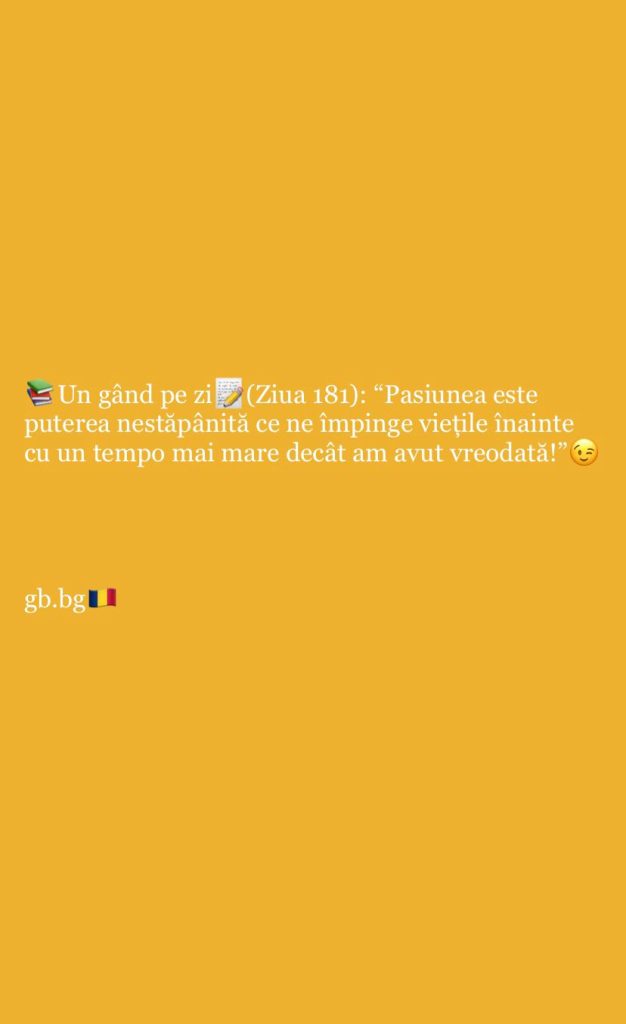 Ziua 181martie 13, 2025 1 min read „Pasiunea este puterea nestăpânită ce ne împinge viețile înainte cu un tempo mai mare decât am avut vreodată.”