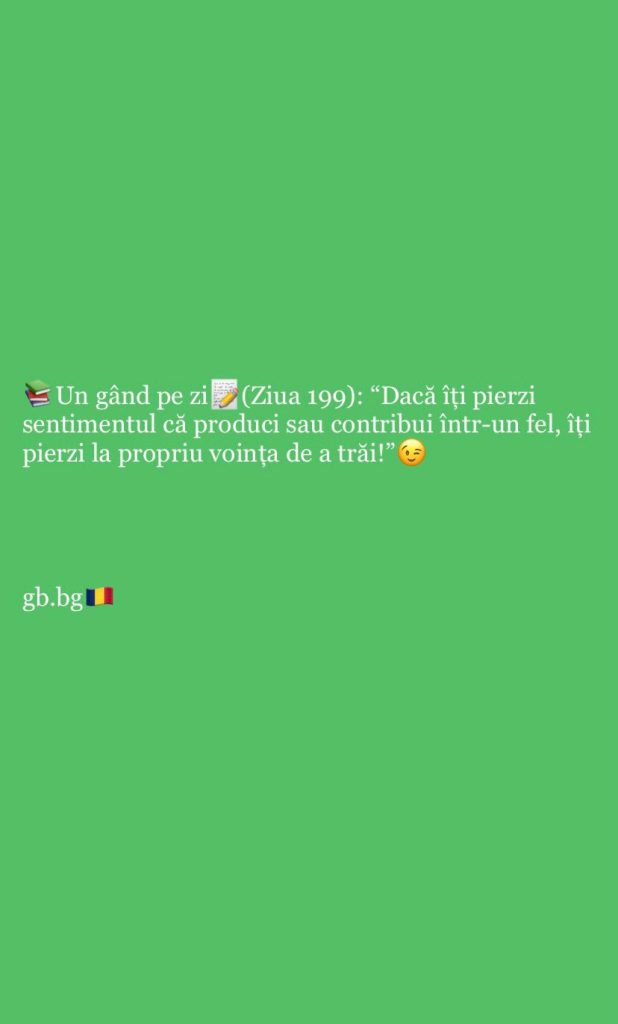 Ziua 199aprilie 1, 2025 1 min read „Dacă îți pierzi sentimentul că produci sau contribui într-un fel, îți pierzi la propriu voința de a trăi!”