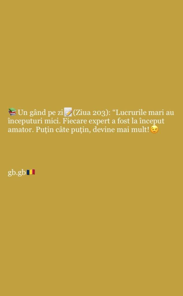 Ziua 203aprilie 1, 2025 1 min read „Lucrurile mari au începuturi mici. Fiecare expert a fost la început amator. Puțin câte puțin, devine mai mult!”