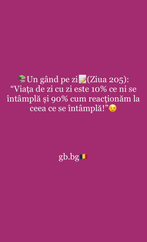 Ziua 205aprilie 9, 2025 1 min read „Viața de zi cu zi este 10% ce ni se întâmplă și 90% cum reacționăm la ceea ce se întâmplă!”