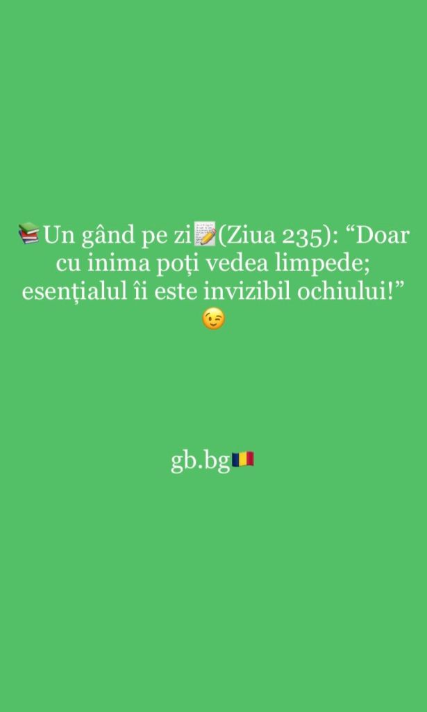 Ziua 235mai 25, 2025 1 min read „Doar cu inima poți vedea limpede; esențialul îi este invizibil ochiului!”