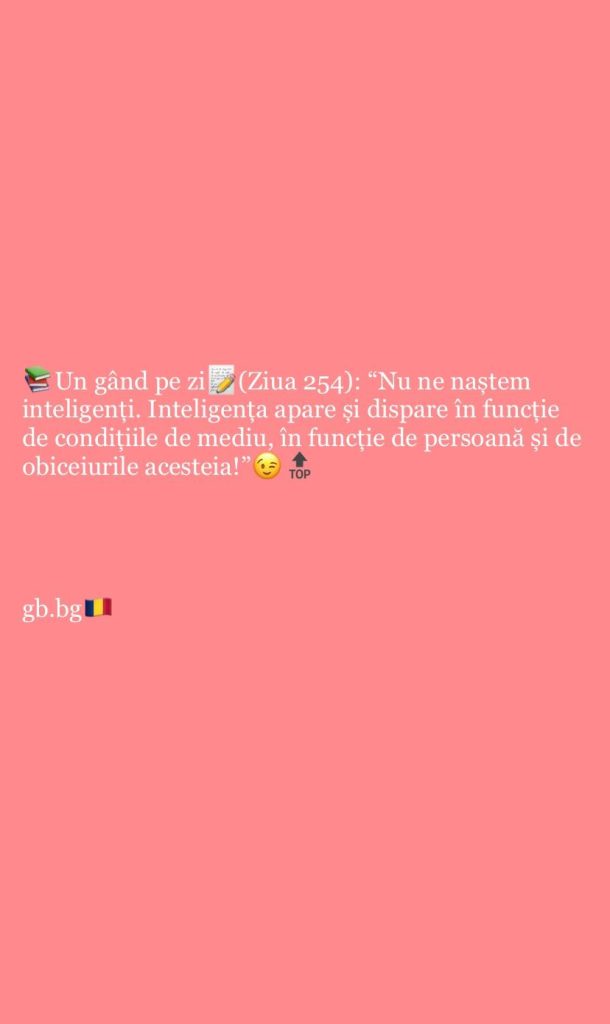 „Nu ne naștem inteligenți. Inteligența apare și dispare în funcție de condițiile de mediu, în funcție de persoană și de obiceiurile acesteia!”