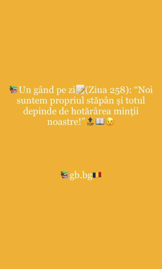 Ziua 258iunie 29, 2025 1 min read „Noi suntem propriul stăpân și totul depinde de hotărârea minții noastre!”