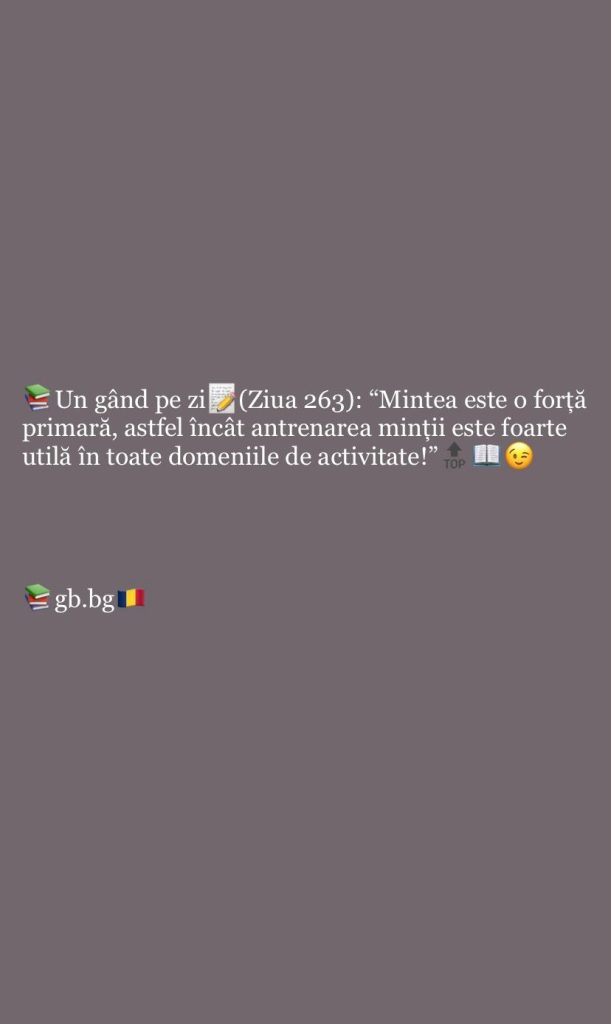 Ziua 263iunie 29, 2025 1 min read „Mintea este o forță primară, astfel încât antrenarea minții este foarte utilă în toate domeniile de activitate!”