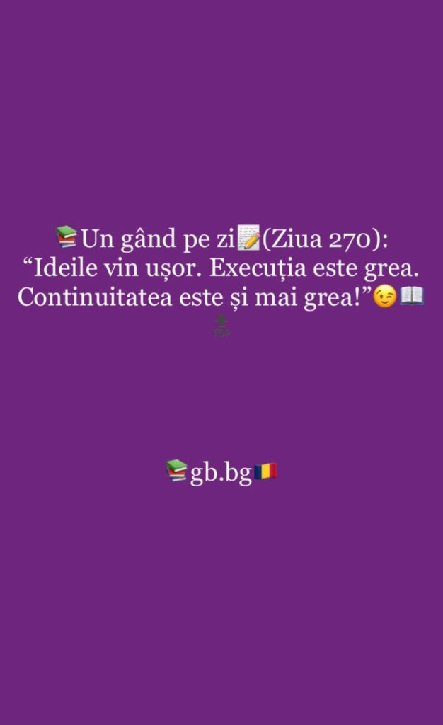Ziua 270august 21, 2025 1 min read „Ideile vin ușor. Execuția este grea. Continuitatea este și mai grea!”