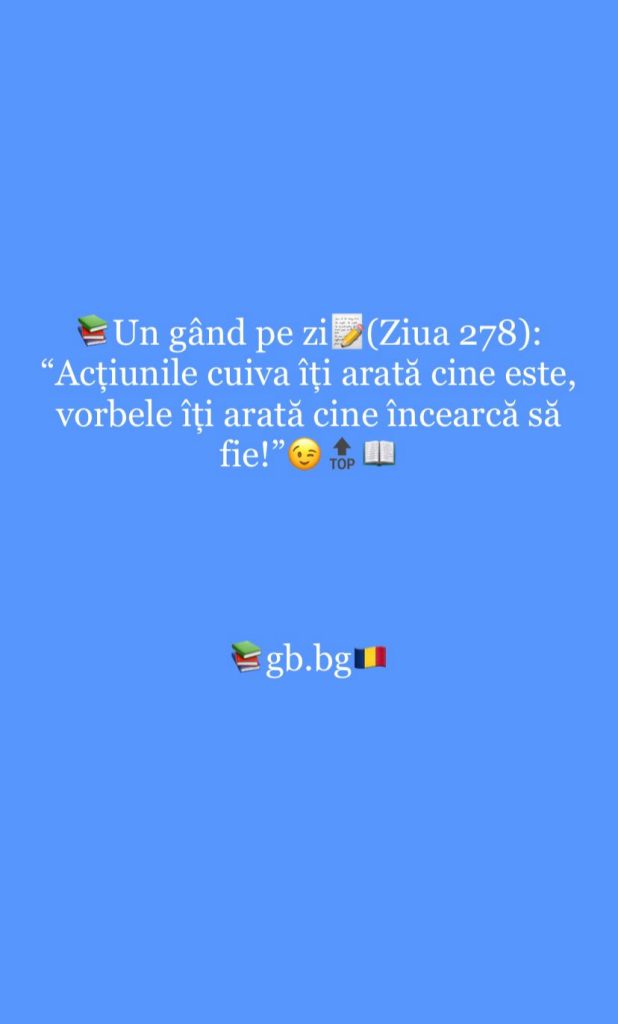 Ziua 278august 21, 2025 1 min read „Acțiunile cuiva îți arată cine este, vorbele îți arată cine încearcă să fie!”