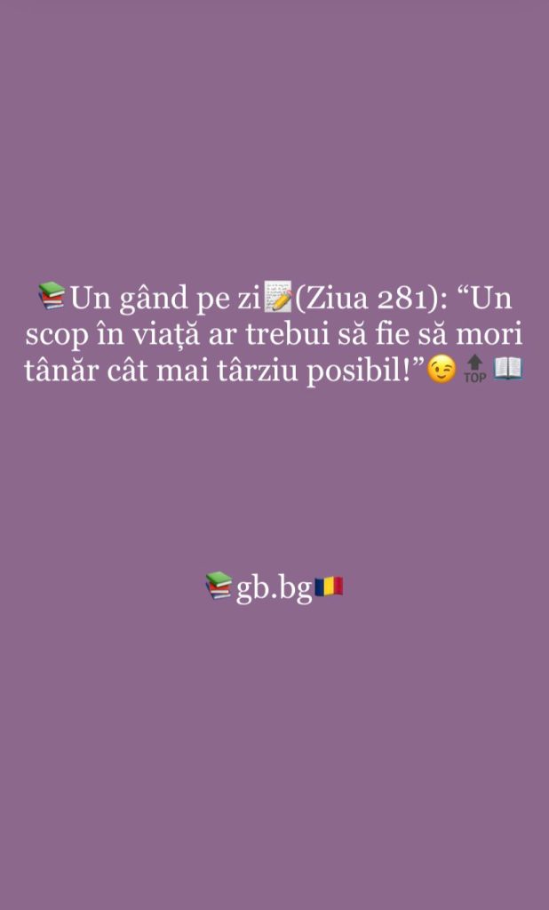 Ziua 281august 21, 2025 1 min read „Un scop în viață ar trebui să fie să mori tânăr cât mai târziu posibil!”