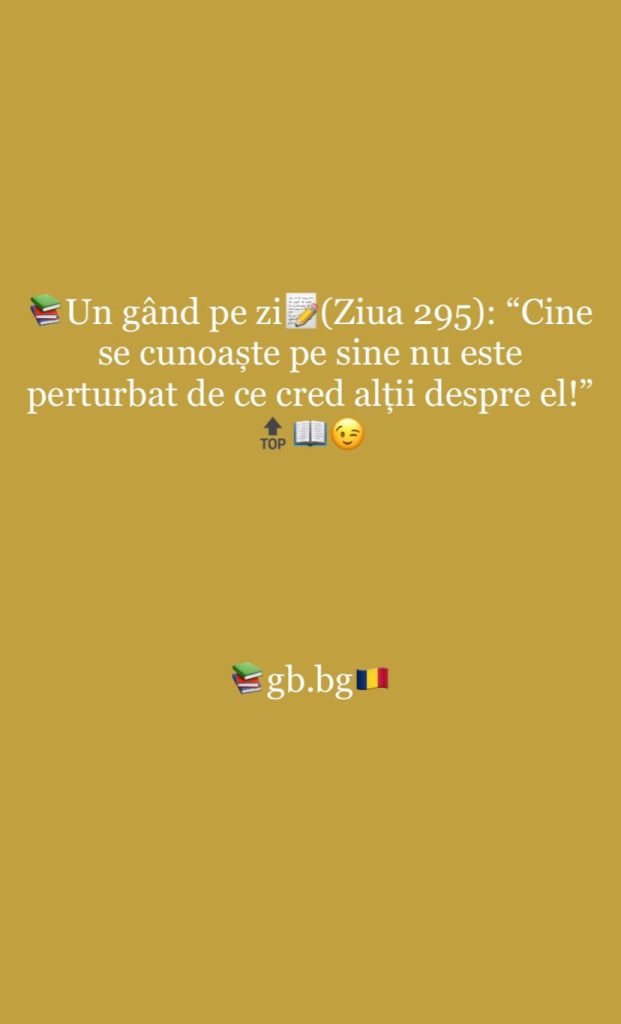 Ziua 295august 21, 2025 1 min read „Cine se cunoaște pe sine nu este perturbat de ce cred alții despre el!”