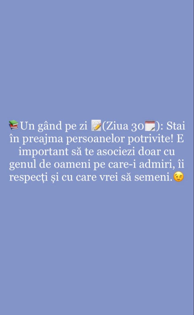 „Stai în preajma persoanelor potrivite! E important să te asociezi doar cu genul de oameni pe care-i admiri, îi respecți și cu care vrei să semeni.”