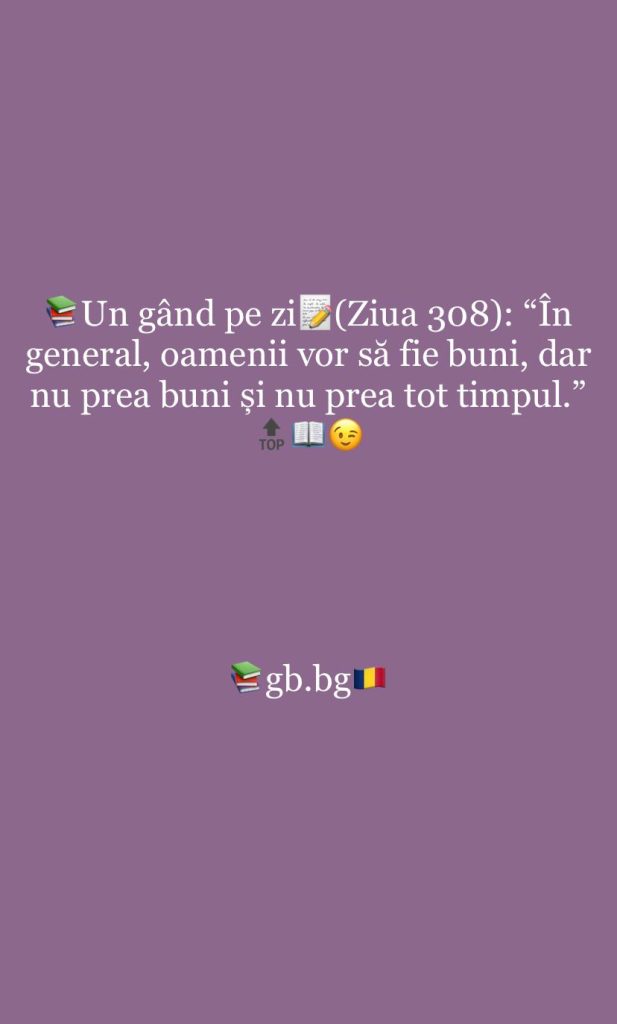 Ziua 308septembrie 8, 2025 1 min read „În general, oamenii vor să fie buni, dar nu prea buni și nu prea tot timpul.”
