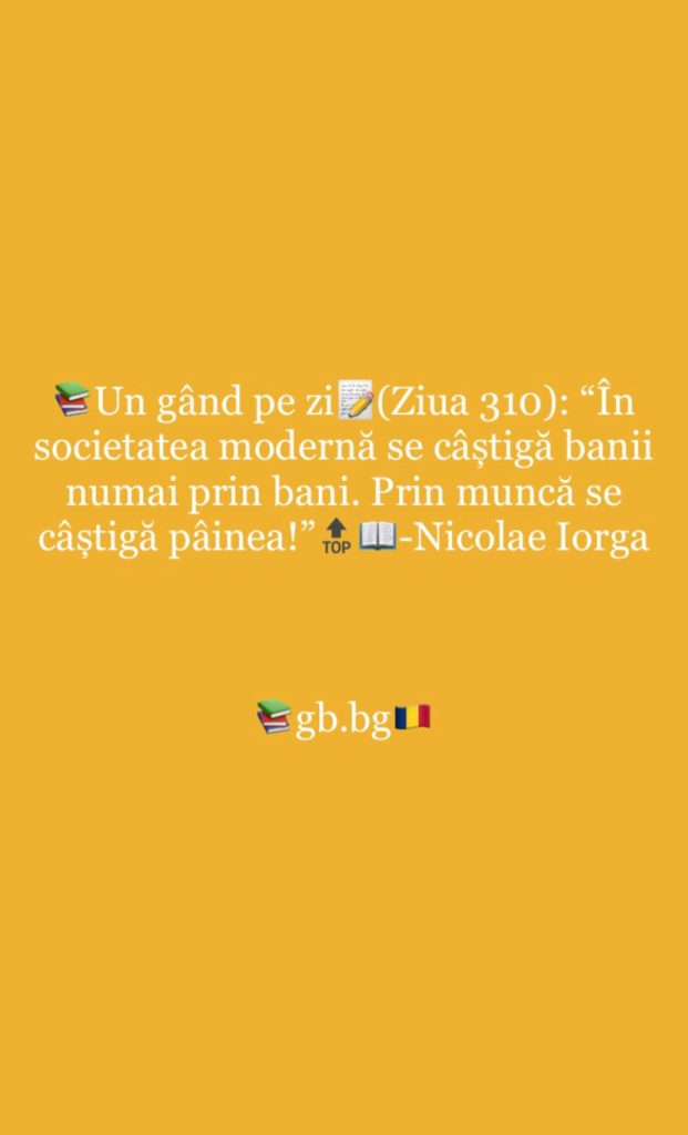 Ziua 310septembrie 8, 2025 1 min read „În societatea modernă se câștigă banii numai prin bani. Prin muncă se câștigă pâinea!”-Nicolae Iorga