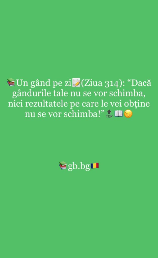 Ziua 314septembrie 8, 2025 1 min read „Dacă gândurile tale nu se vor schimba, nici rezultatele pe care le vei obține nu se vor schimba!”