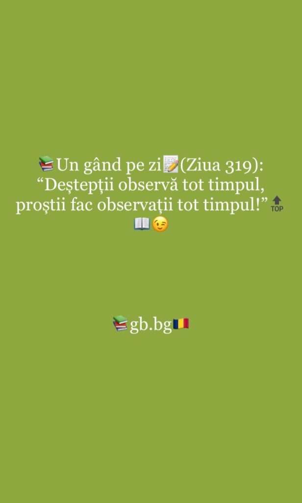 Ziua 319septembrie 8, 2025 1 min read „Deștepții observă tot timpul, proștii fac observații tot timpul!”