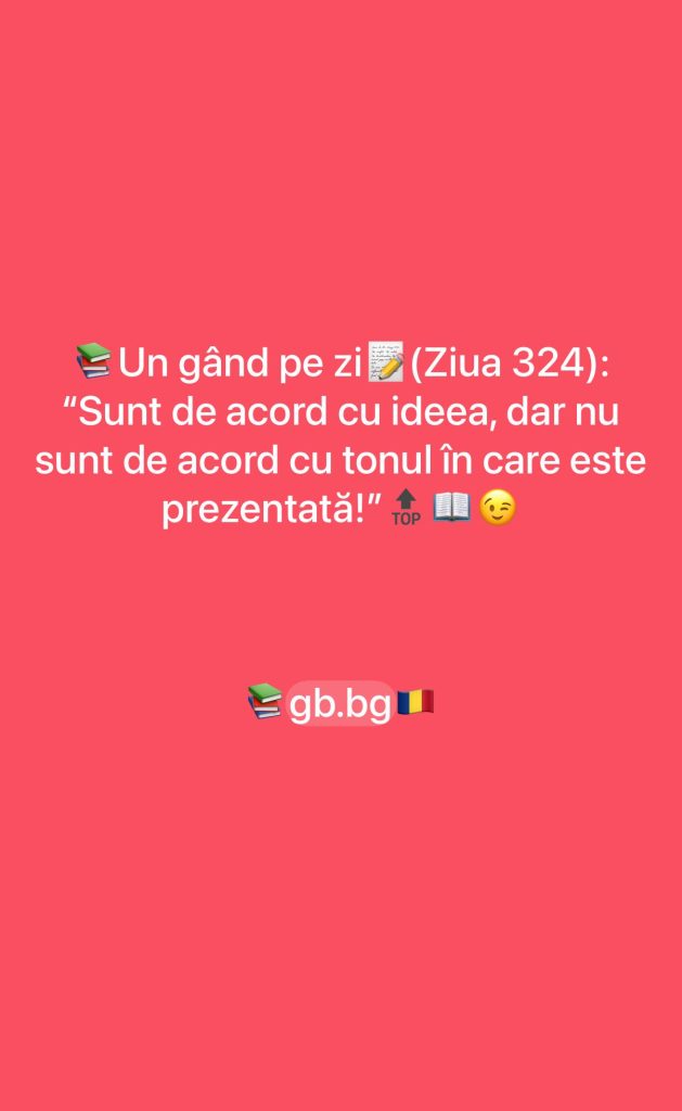 Ziua 324septembrie 28, 2025 1 min read „Sunt de acord cu ideea, dar nu sunt de acord cu tonul în care este prezentată!”
