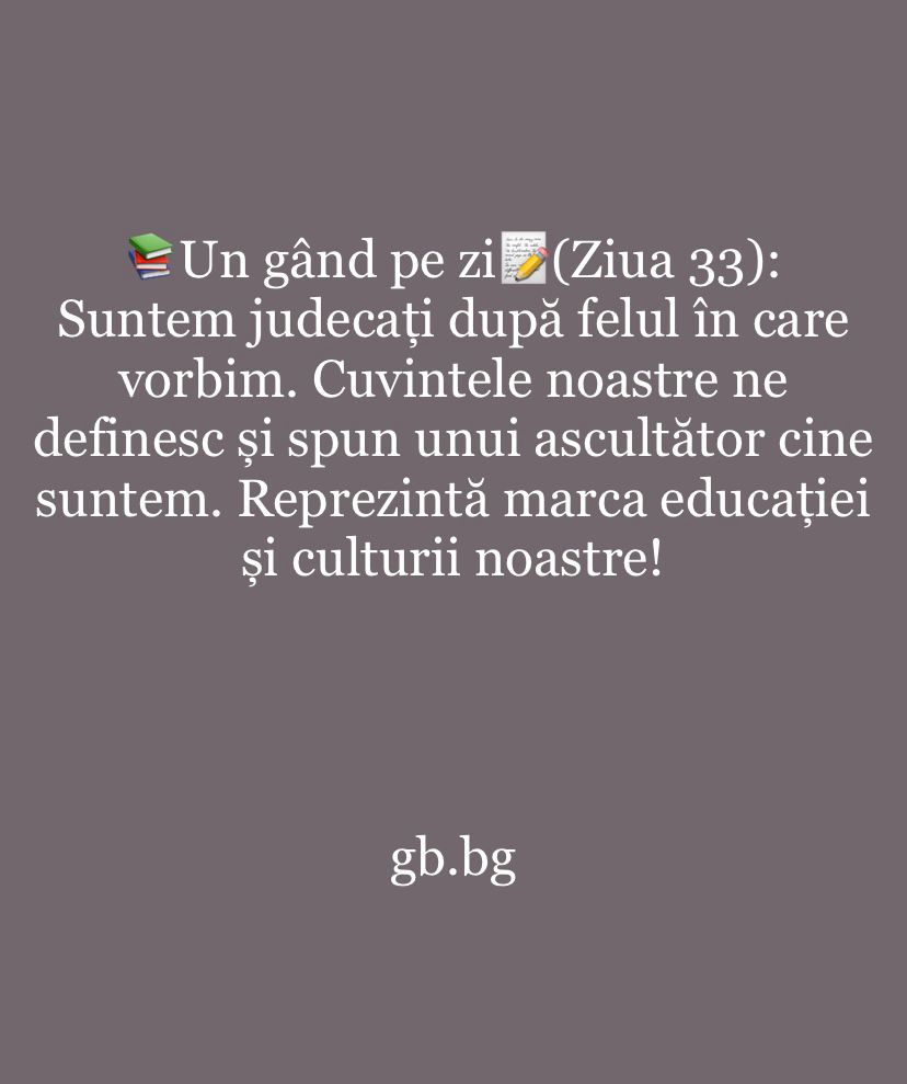 „Suntem judecați după felul în care vorbim. Cuvintele noastre ne definesc și spun unui ascultător cine suntem. Reprezintă marca educației și culturii noastre!”