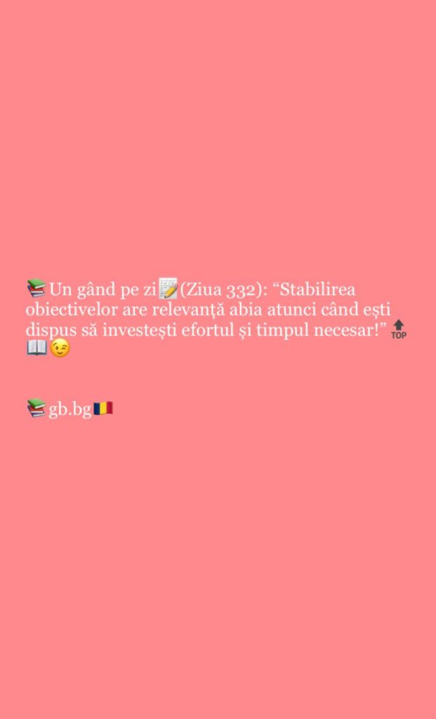 Ziua 332septembrie 28, 2025 1 min read „Stabilirea obiectivelor are relevanță abia atunci când ești dispus să investești efortul și timpul necesar!”