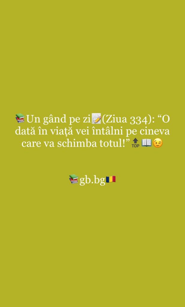 Ziua 334septembrie 28, 2025 1 min read „O dată în viață vei întâlni pe cineva care va schimba totul!”