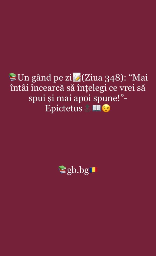 Ziua 348decembrie 9, 2025 1 min read „Mai întâi încearcă să înțelegi ce vrei să spui și mai apoi spune!”-Epictetus