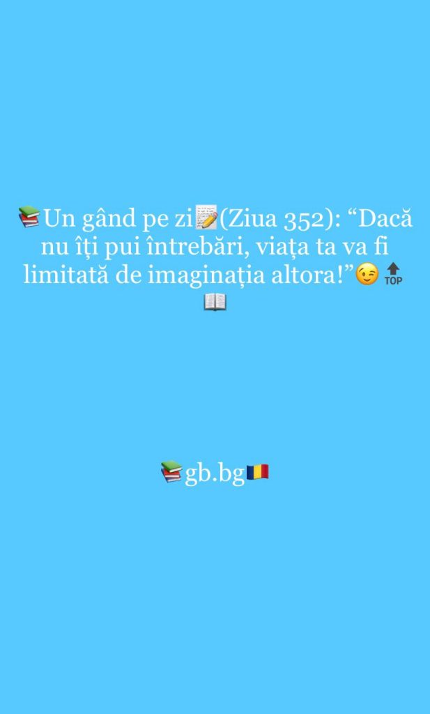 Ziua 352decembrie 9, 2025 1 min read „Dacă nu îți pui întrebări, viața ta va fi limitată de imaginația altora!”