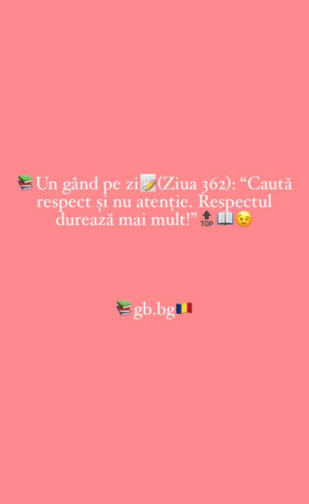 „Caută respect și nu atenție. Respectul durează mai mult!”