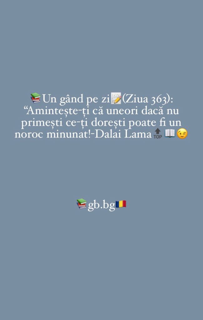 Ziua 363decembrie 9, 2025 1 min read „Amintește-ți că uneori dacă nu primești ce-ți dorești poate fi un noroc minunat!”-Dalai Lama