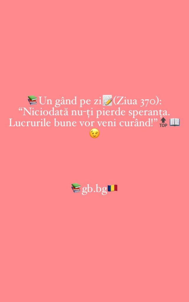 Ziua 370decembrie 9, 2025 1 min read „Niciodată nu-ți pierde speranța. Lucrurile bune vor veni curând!”