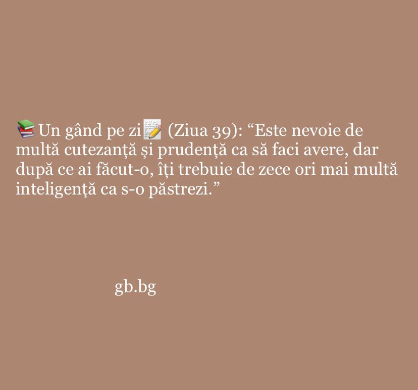„Este nevoie de multă cutezanță și prudență ca să faci avere, dar după ce ai făcut-o, îți trebuie de zece ori mai multă inteligență ca s-o păstrezi „