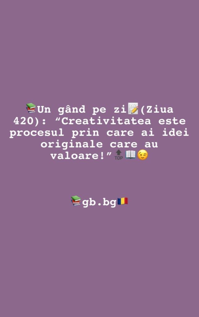 Ziua 420aprilie 1, 2026 1 min read „Creativitatea este procesul prin care ai idei originale care au valoare!”