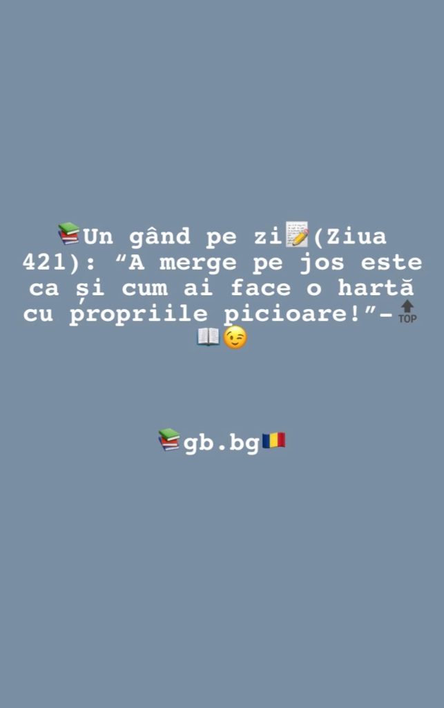 Ziua 421aprilie 1, 2026 1 min read „A merge pe jos este ca și cum ai face o hartă cu propriile picioare!”