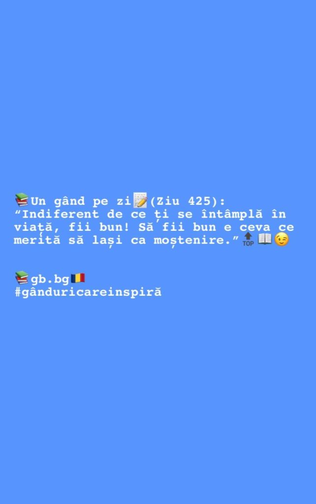 Ziua 425aprilie 1, 2026 1 min read „Indiferent de ce ți se întâmplă în viață, fii bun! Să fii bun e ceva ce merită să lași ca moștenire.”