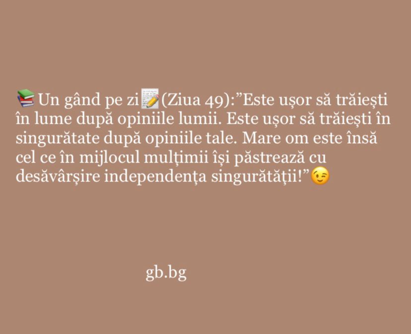„Este ușor să trăiești în lume după opiniile lumii. Este ușor să trăiești în singurătate după opiniile tale. Mare om este însă cel ce în mijlocul mulțimii își păstrează cu  desăvârșire independența singurătății!”