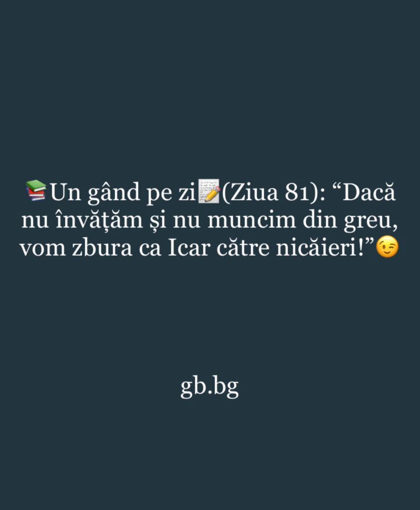 Ziua 81ianuarie 13, 2025 1 min read „Dacă nu învățăm și nu muncim din greu, vom zbura ca Icar către nicăieri!”