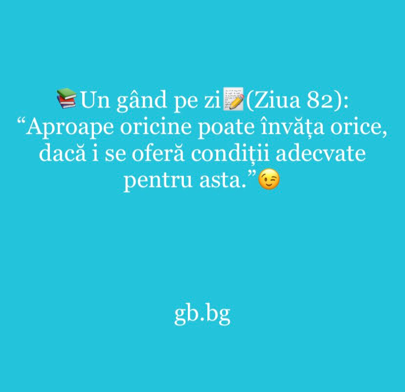 Ziua 82ianuarie 13, 2025 1 min read „Aproape oricine poate învăța orice, dacă i se oferă condiții adecvate pentru asta.”