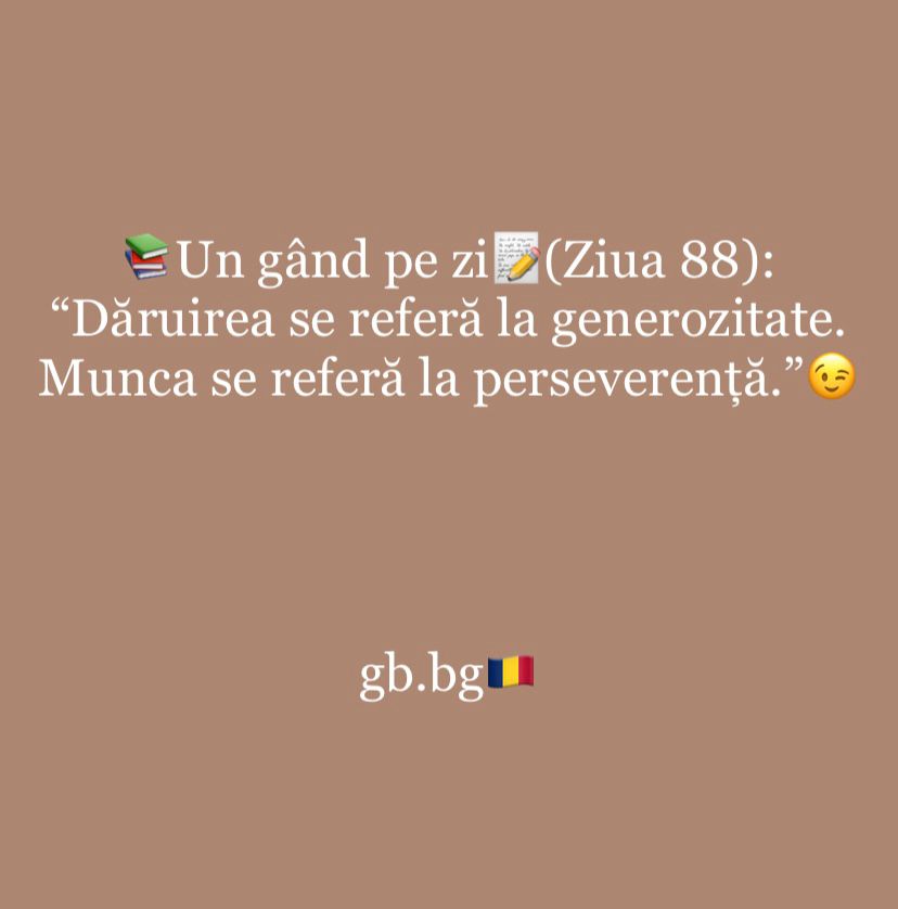 Ziua 88ianuarie 13, 2025 1 min read „Dăruirea se referă la generozitate. Munca se referă la perseverență.”